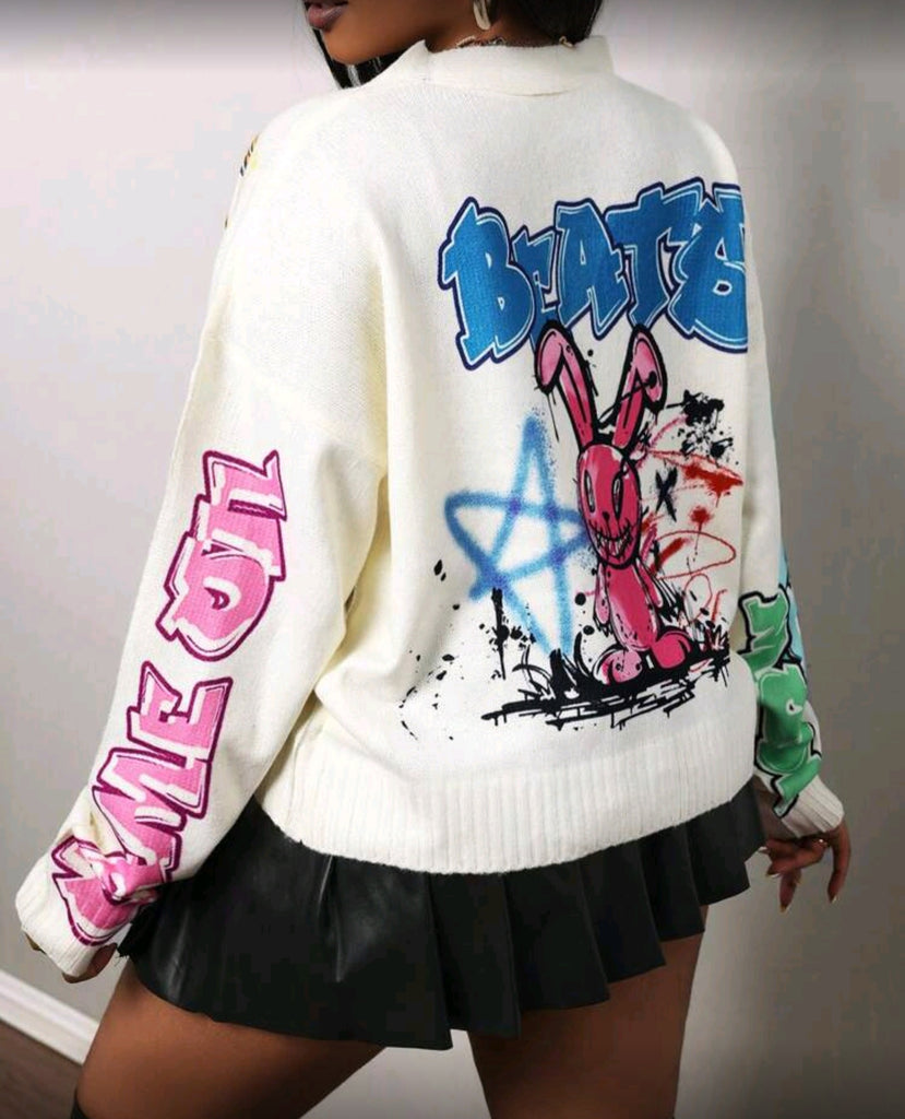 Make a bold statement with the Slay The Day Sweater. This graffiti-inspired cardigan blends edgy street art vibes with cozy comfort, perfect for those who dare to stand out. Its dynamic design turns everyday wear into an urban masterpiece, empowering you to express your fearless style wherever you go.