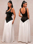 The Candyland Maxi Dress features a sophisticated U-neck design complemented by striking contrast stitching that enhances its silhouette. Crafted for elegance and comfort, this long dress offers a flattering fit ideal for both casual and formal occasions. Its detailed stitching adds a refined touch, making it a versatile addition to any wardrobe.