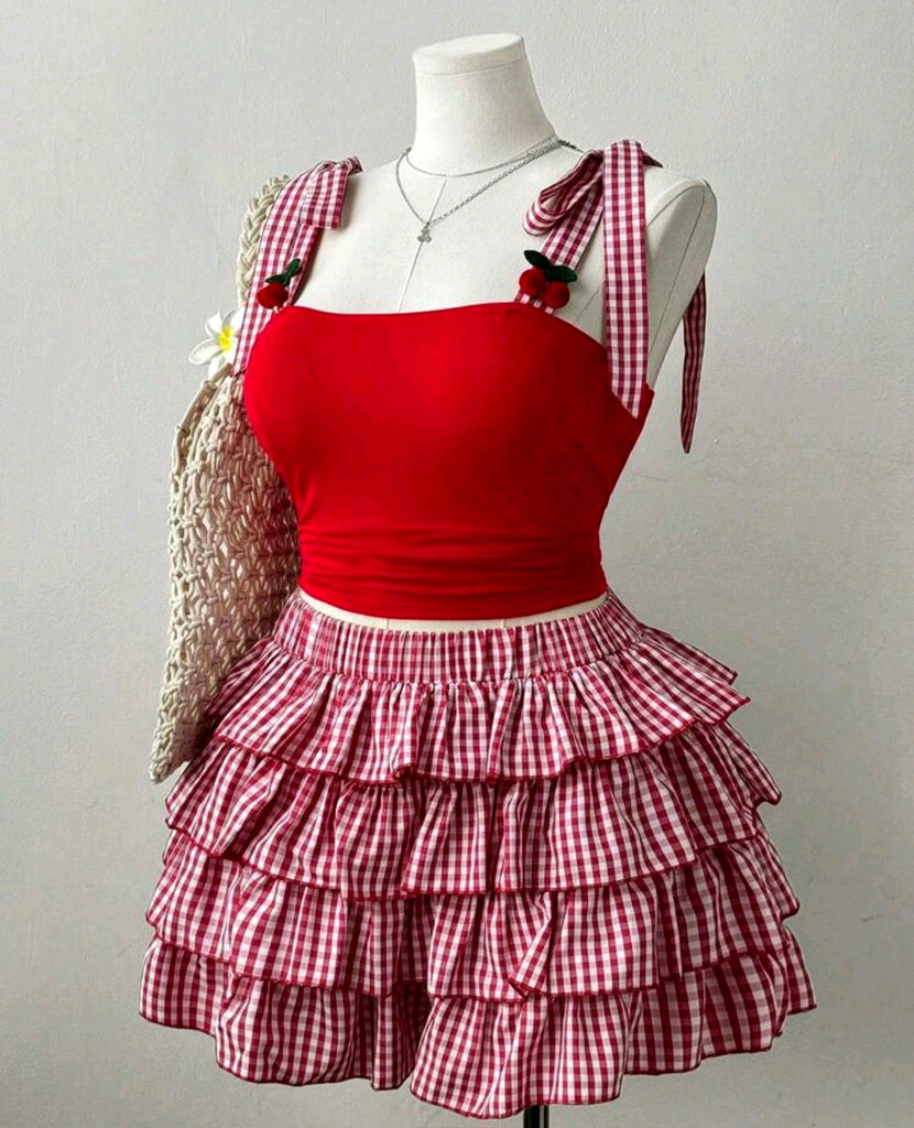 This Cherry Pop 2 Piece Set features charming ruffle details and a delicate bow, adding a playful yet sophisticated touch to your wardrobe. Expertly designed for both comfort and style, this set effortlessly elevates your look with its feminine accents and flattering fit. Perfect for occasions where you want to stand out with subtle, cute elegance.
