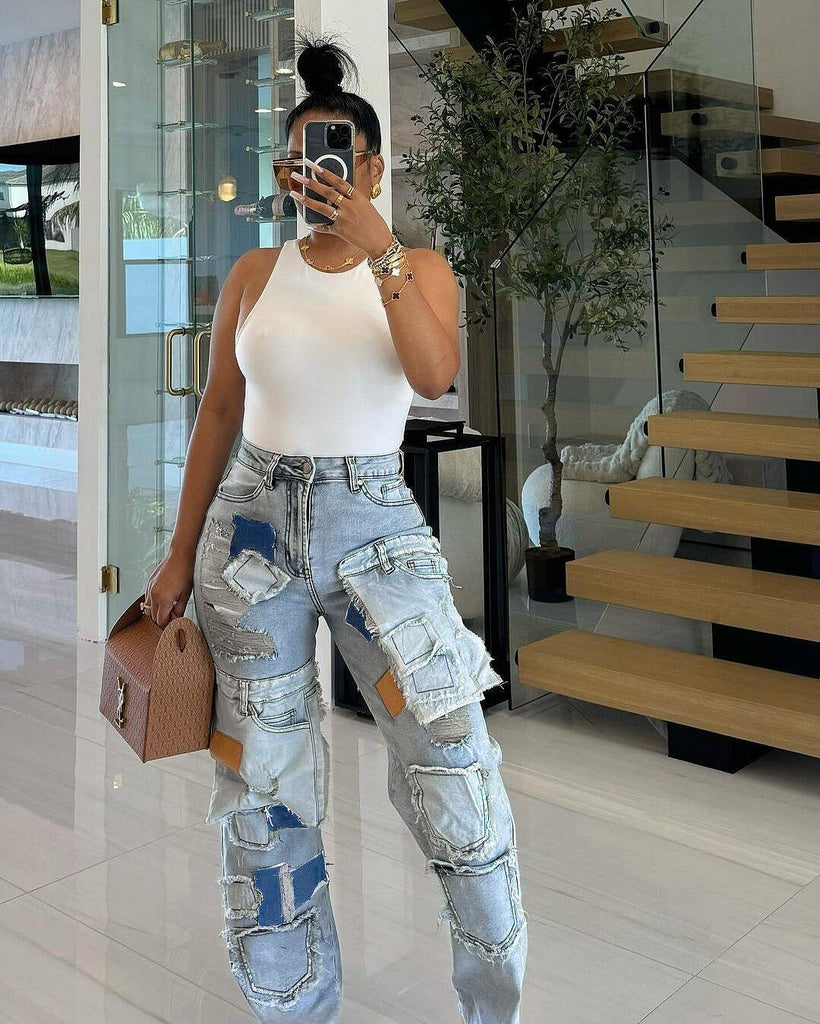 Shred the rulebook with these bold patchwork denim jeans that refuse to blend in. Featuring a relaxed straight-leg silhouette and strategic multi-pocket design, they deliver both edge and everyday functionality. The washed finish adds character while the patchwork detailing makes a statement—perfect for those who dress to stand out. Comfortable enough for all-day wear, daring enough to turn heads.
